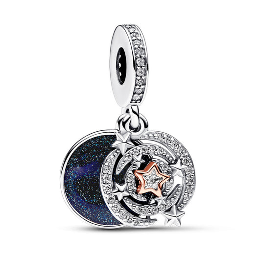 925 Sterling silver Lucky Star Snow Sun Moon Double Pendant Series Charm
