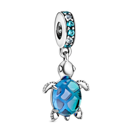925 Sterling silver Sea World Colorful Gem Turtle Beading Series Charm