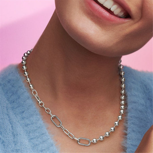 S925 Sterling Silver ME Metal Bead & Link Chain Necklace