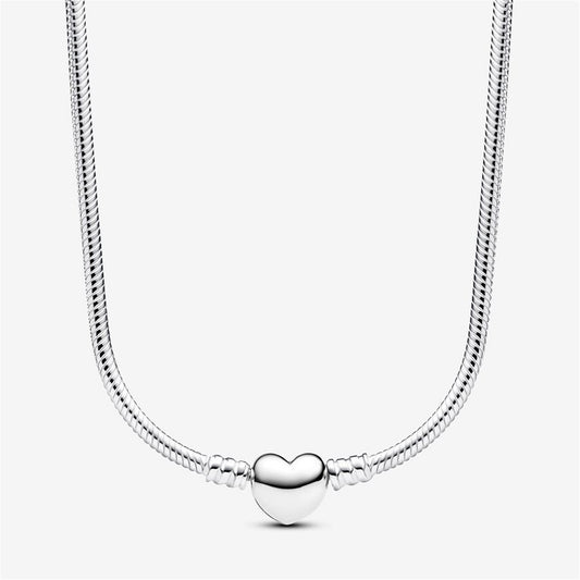 S925 Sterling Silver Moments Heart Clasp Snake Chain Necklace