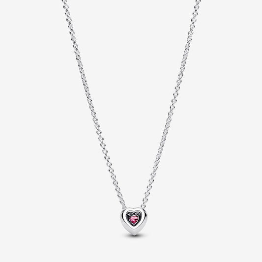 S925 Sterling Silver Pink Elevated Heart Necklace