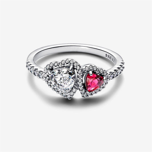 S925 sterling silver Double Heart Sparkling Ring