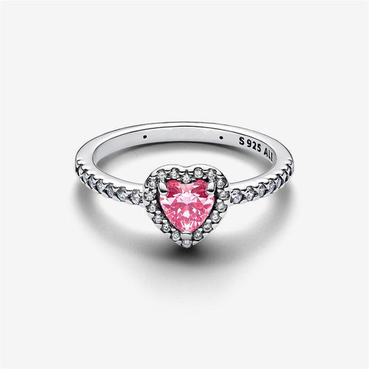 S925 Sterling Silver Elevated Pink Heart Ring