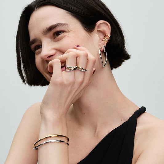 S925 Sterling Silver Sparkling Twisted Lines Ring