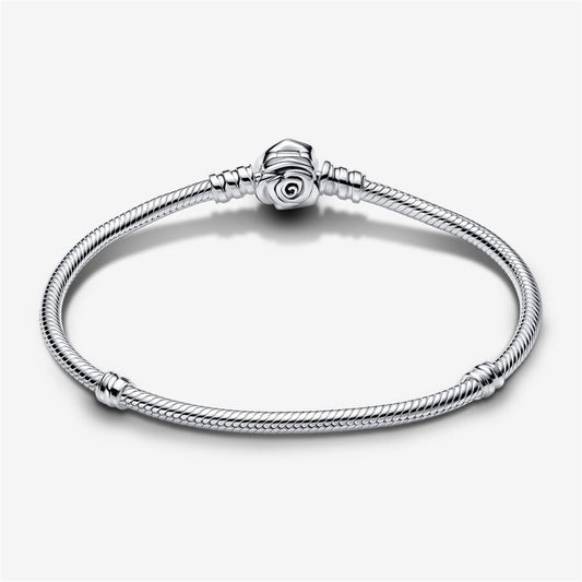 S925 sterling silver Moments Rose in Bloom Clasp Snake Chain Bracelet