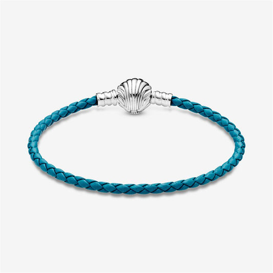 S925 sterling silver Moments Seashell Clasp Turquoise Braided Leather Bracelet