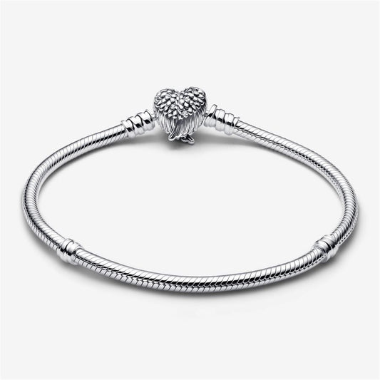 S925 Sterling Silver Heart Wings Clasp Snake Chain Bracelet