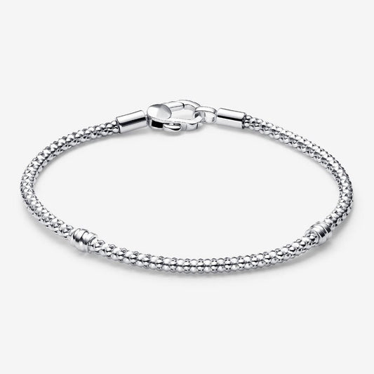 S925 Sterling Silver Moments Studded Chain Slider Bracelet