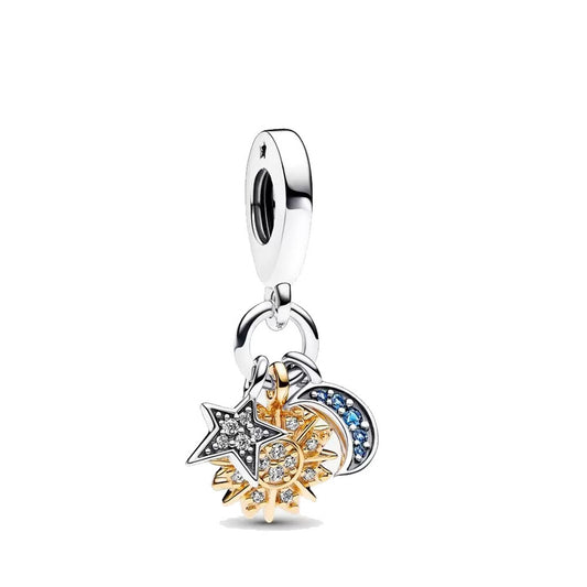 S925 Sterling Silver Two-tone Splittable Sun & Moon Dangle Charm