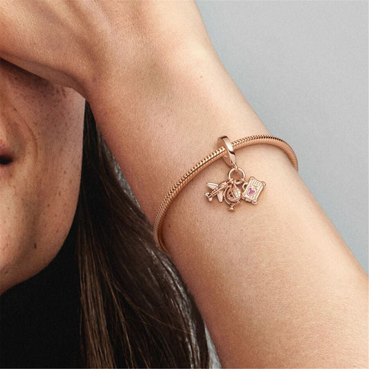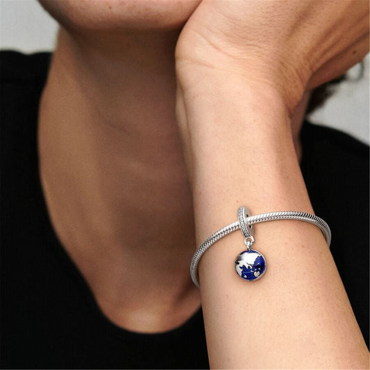 S925 Sterling Silver Airplane, Globe & Suitcase Triple Dangle Charm