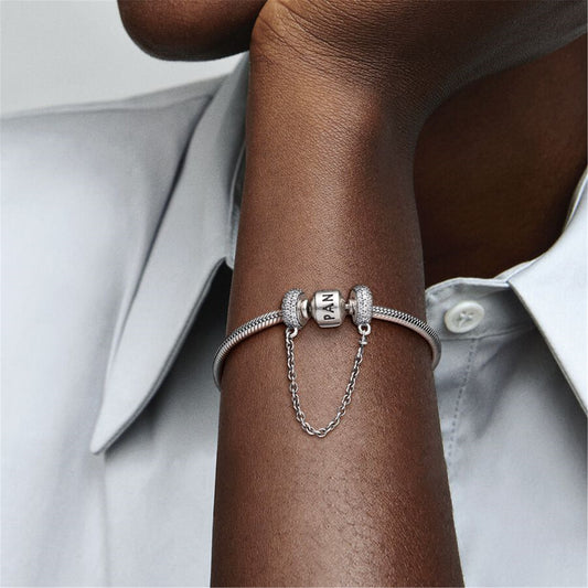 S925 Sterling Silver Sparkling Safety Chain Clip Charm